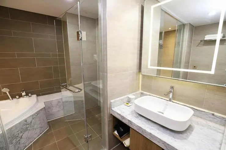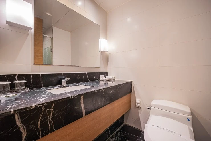 어메니티는 샴푸와 컨디셔너, 샤워젤, 로션, 칫솔, 치약 등이 꼼꼼히 구비되어 있다. 디럭스트윈, 로얄스위트 객실에는 욕조가 있어 피로를 풀기에도 좋다.