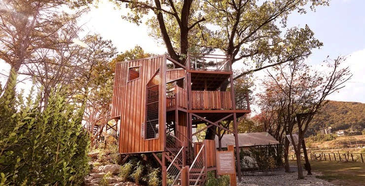 야외에도 신나게 뛰어놀 수 있는 트리하우스와 미니 동물원인 팜스빌리지, 산책로가 잘 조성되어 있어 가평 아이와 가볼 만한 곳으로도 인기가 많다.