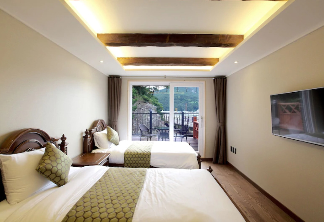 지중해풍 벽체와 바닥 그리고 한식의 대들보, 서까래가 접목된 오리엔탈 스타일의 고급스러운 객실로 특히 싱글베드 2개로 구성된 트윈룸이 있어 가족 호캉스 숙소로 인기가 높다.