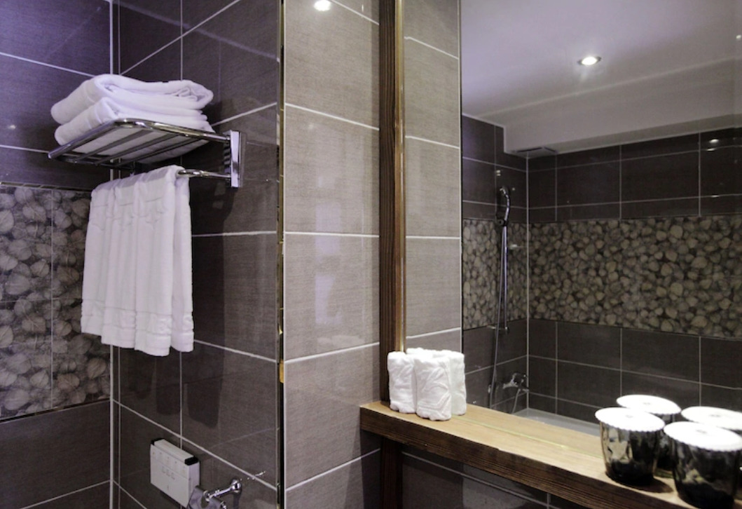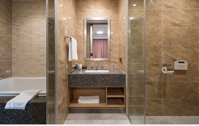 스탠포드 호텔앤리조트 통영 킹노블에는 총 2개의 욕실이 준비돼 있는데 각각 욕조와 샤워 부스가 설치되어 있다. 욕실 어메니티로는 샴푸, 컨디셔너, 바디워시, 바디로션, 비누, 칫솔, 치약, 헤어 드라이어, 가운 등 준비된다.