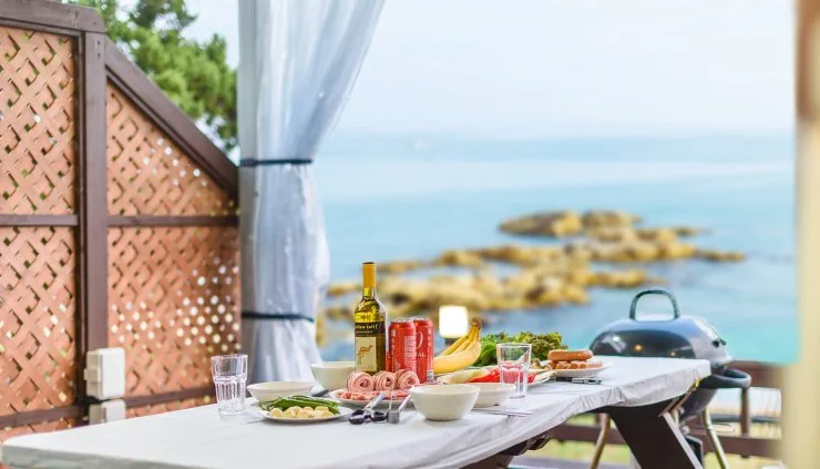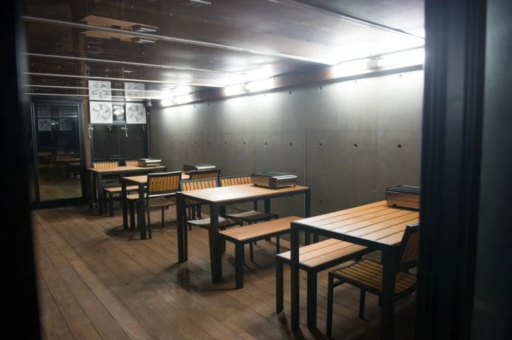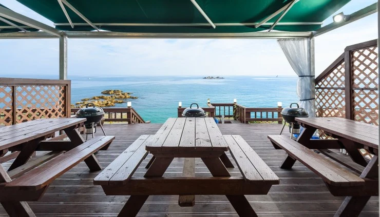 고성 아지로펜션에는 바다가 보이는 오션뷰 바비큐장도 준비되어 있다. 15~22시 사이에 이용이 가능하며 3인 기준 20,000원의 추가요금이 부과된다. 101호는 개별 바비큐도 가능하다. 숯불 바비큐는 날씨에 따라 자이글로 대체될 수도 있다.