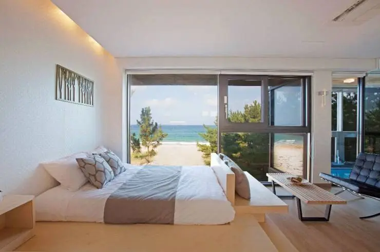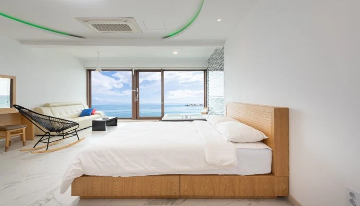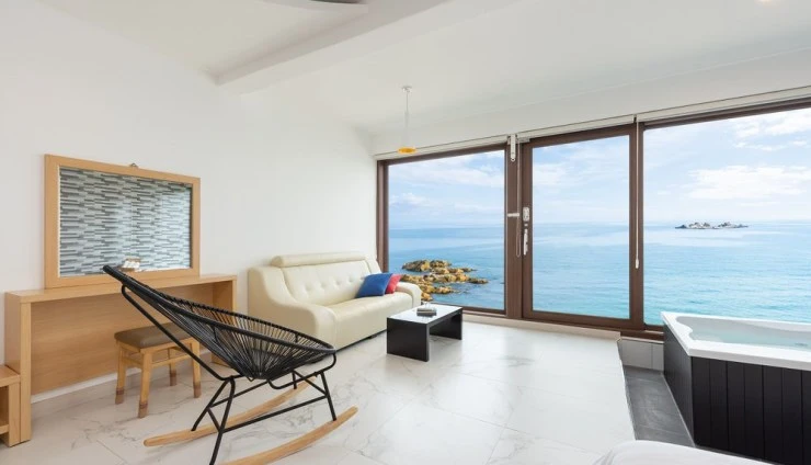 고성 비치프론트 펜션은 이름에서도 느껴지듯 전 객실 오션 프론트룸을 제공하는 고성 오션뷰 펜션이다. 바로 앞이 바다라 가리는 것 없이 탁 트인 전망을 누릴 수 있다. 로맨틱하게 연인과 일출이나 일몰을 보기에도 적절하다.