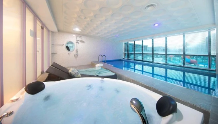 풀빌라 객실의 개별 수영장은 24시간 온수가 유지되는 미온수 풀로 사계절 내내 이용할 수 있다. 규모가 매우 넓고 쾌적하게 관리되고 있어 힐링하기 딱이다. 스파도 함께 즐길 수 있어 일석이조!