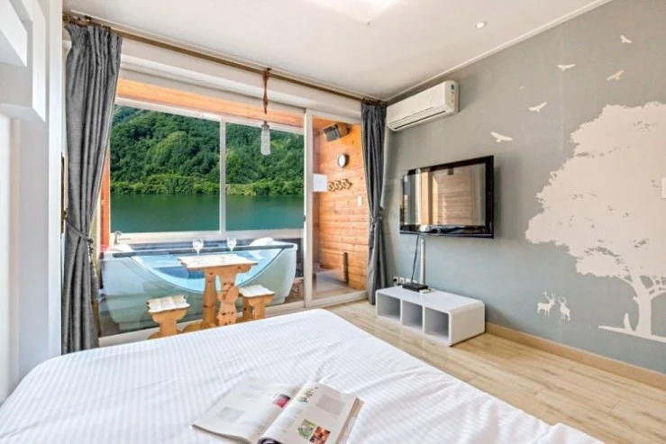 피그드림 스파 펜션에서는 전 객실에서 남이섬과 북한강 리버뷰를 즐길 수 있다. 실외 개별 바비큐장에서 힐링뷰와 함께 맛있는 식사도 즐길 수 있다. 이곳은 깔끔하면서도 모던한 인테리어로 커플 여행객들에게 추천한다.