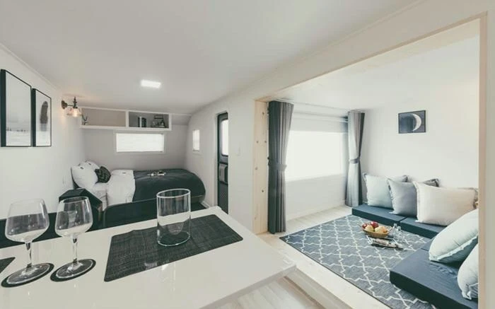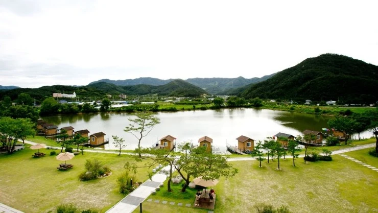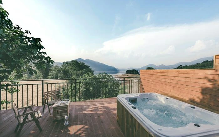 개별 데크에 마련돼 충주호를 바라보며 낭만적인 시간 보내기 제격이다. 객실은 모던하고 난방시설도 잘 갖추어져 있다. 게다가 빔프로젝터도 설치돼 있으니 저녁에는 오붓하게 영화 한 편 감상해도 좋다.
