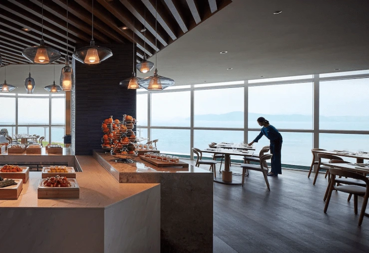 조식은 5층 레스토랑 더 뷰에서 오전 6시 30분부터 10시까지 운영된다. 한식을 포함한 뷔페식으로 제공된다. 일찍 서두르면 창가 쪽에 자리 잡을 수 있다. 직접 서빙해주는 식전 주스부터 퀄리티 높기로 유명하다.