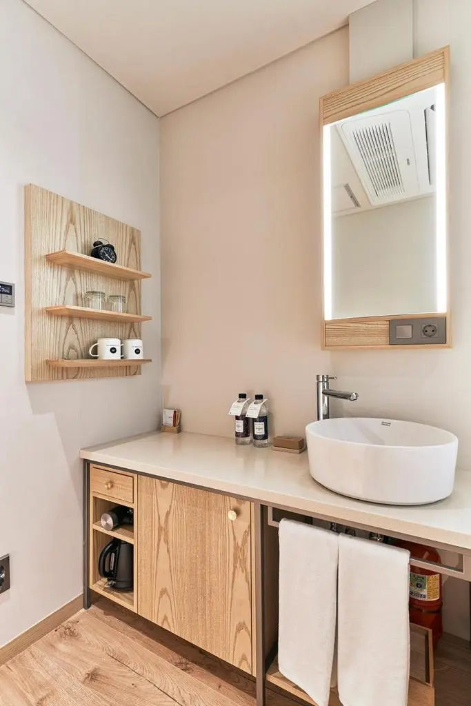 어메니티는 친환경 브랜드인 동구밭의 고체 비누가 샴푸, 페이스, 바디 총 3개 제공된다. 환경 보호를 위해 1회용 칫솔과 치약은 제공하지 않고 있다. 필요 시 프론트에서 구매하실 수 있다.