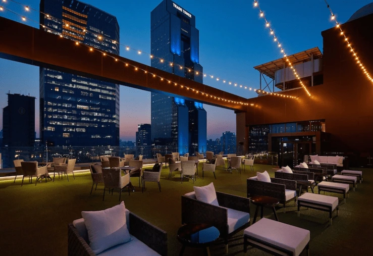 로비는 가장 고층인 21층에 자리했다. 루프탑 테라스와 바, 비즈니스 코너도 같은 층에 있다. 이외 부대시설로는 미팅룸과 피트니스 센터, 세탁실을 갖췄다. 루프탑은 도심 속 석양 맛집으로 유명하다.