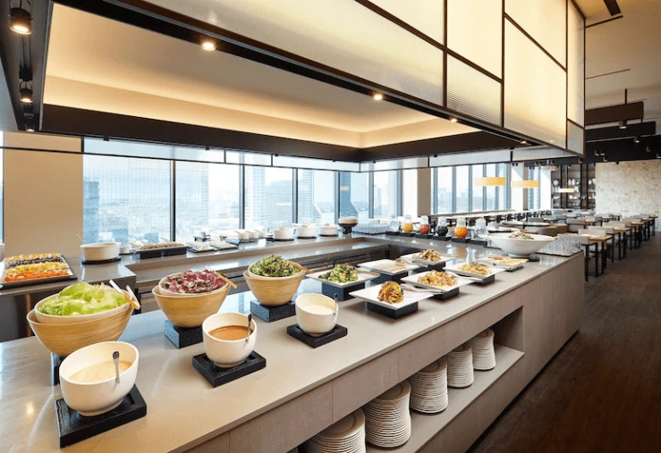 조식은 20층 레스토랑에서 주중 6시 30분부터 9시 30분까지 뷔페식으로 운영된다. 주말에는 30분씩 뒤로 늦춰진다. 코로나 19 및 호텔 사정에 따라 조식 뷔페는 도시락으로 대체될 수 있다.