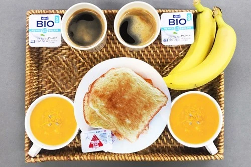 조식은 1인 5,500원에 이용할 수 있다. 호박죽, 토스트, 과일, 아메리카노, 요거트가 모두 제공되는 가격이다! 07:30 ~ 09:30 사이에 룸서비스로 배달되어 편하게 식사를 즐길 수 있다.