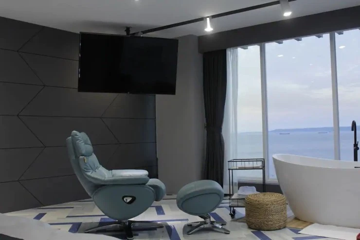 로얄 스위트 객실은 파노라마 오션뷰가 펼쳐진다. 아름다운 바다와 함께 반신욕을 즐길 수 있어 호캉스에 제격인 포항 호텔이다. 어메니티는 샴푸와 컨디셔너, 바디워시, 칫솔, 치약 등이 모두 제공된다.