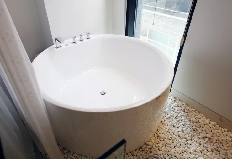 욕실에는 최고급 비데와 욕조를 설치해 놨다. 욕실용품으로는 샴푸와 린스, 바디워시가 구비돼 있다. 이외 칫솔과 치약, 수건, 욕실화 등을 갖췄다. 객실 안에는 무료 생수 및 음료를 비치했다.