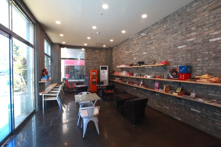 파티에 먹음직스런 음식이 빠지면 서운하다. 1층 다이닝 룸은 투숙객 누구나 자유롭게 이용할 수 있다. 간단한 즉석 요리가 가능하다. 라면 자동 판매기에서는 순식 간에 끓인 라면이 완성된다. 옆에는 음료와 스낵바도 갖췄다.