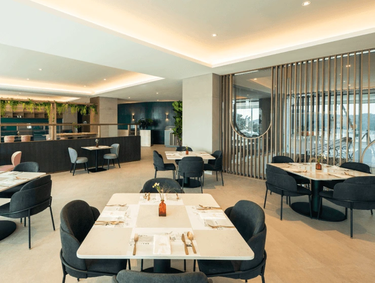 조식은 레스토랑 더 파이브에서 오전 7시부터 10시까지 운영된다. 본래는 인터내셔널 뷔페로 제공된다. 코로나 19 확산 방지 및 투숙객 안전을 위해 한식 또는 양식 한상차림으로 준비될 수 있다.