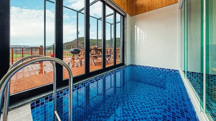 객실은 개별 수영장을 갖춘 풀빌라와 제트스파 옵션을 선택할 수 있다. 개별 테라스에서 프라이빗하게 수영이나 스파를 즐길 수 있으며, 빔프로젝트 대여도 가능해 즐길 거리가 다양하다. 넓고 쾌적한 객실은 최대 8인까지 숙박이 가능해서, 가족여행이나 친구들과 연말모임 장소로도 제격인 곳이다.
