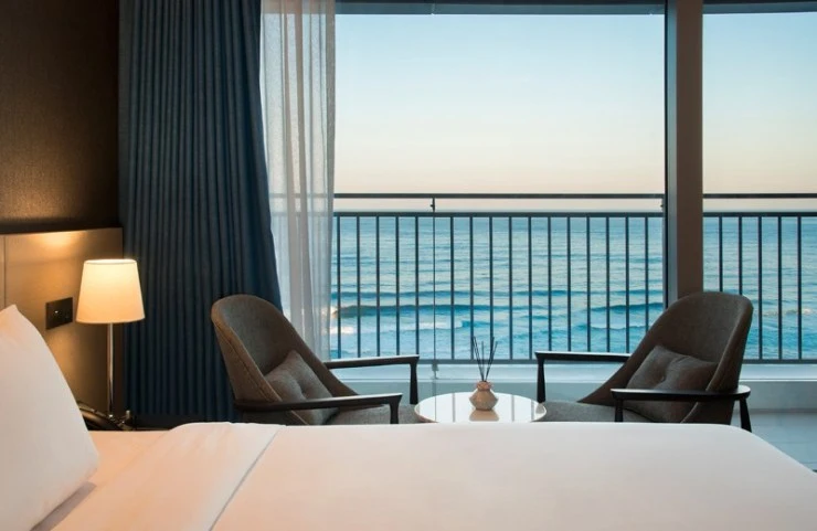 강릉 세인트존스호텔은 좋은 위치와 다양한 부대시설로 인기가 많은 곳이다. 많은 객실 중 커플 여행객에게는 디럭스 더블룸을 추천한다. 아름다운 오션뷰가 창을 가득 채워 일출을 보기에도 좋다. 개별 발코니도 있어 프라이빗한 시간을 보낼 수 있다.