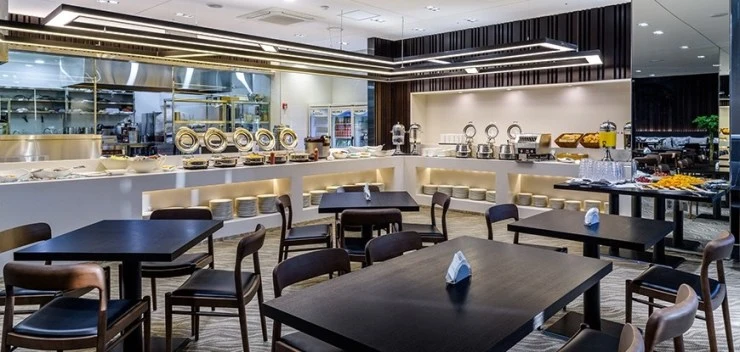 조식은 앞 건물에 있는 ‘제주칼국수 제주해물탕’ 에서 제공된다. 메뉴로는 제주 들깨쑥떡국, 오늘의 미역국, 전복영양죽 등 영양가 만점의 단품 메뉴로 오전 07:30 ~ 10:00 까지 먹을 수 있다.