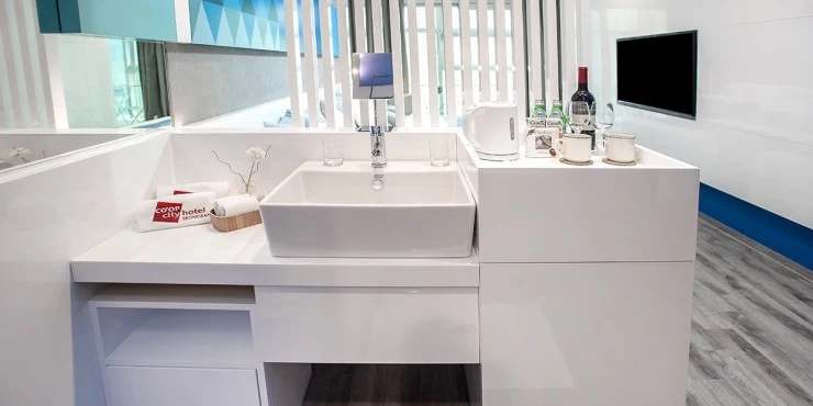 코업시티호텔 성산의 욕실은 세면대와 샤워실, 화장실이 분리되어 있어 편리하게 사용할 수 있다.
