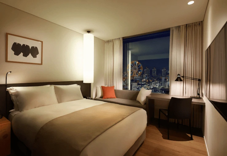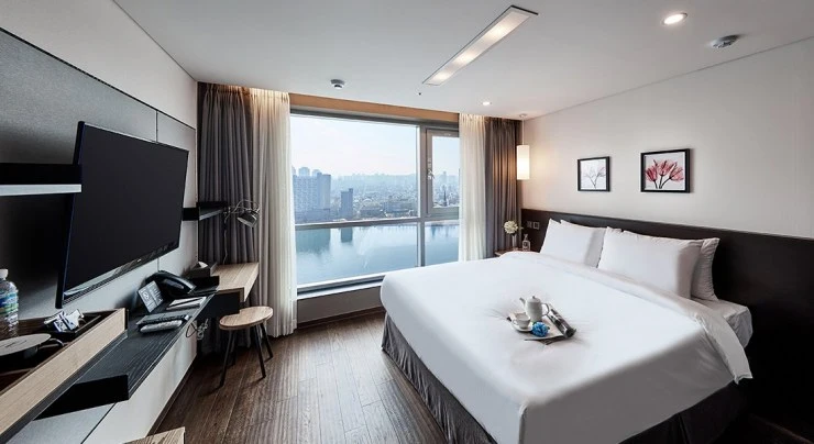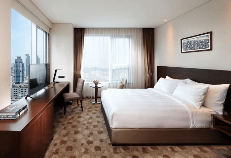 지상 22층 규모로, 깔끔한 외관을 자랑해요. 화려한 도심 야경이 유명한 호텔인 만큼 객실 내 큰 창이 인상적이다. 신라호텔 수준의 고급 침구와 침대를 제공해, 안락한 휴식을 취할 수 있다.