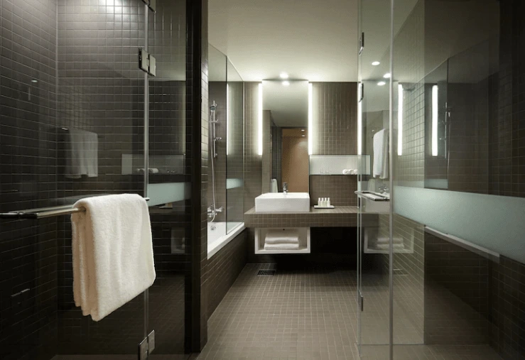 울산 호텔 롯데 시티 욕실에는 비데를 설치해놨다. 욕실 비품으로는 샴푸와 린스, 샤워젤, 바디로션, 비누가 제공된다. 이외 개인 위생용품으로 목욕 가운과 바디 스펀지, 빗, 수건 등을 구비했다.