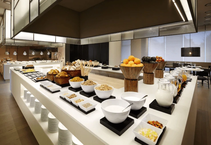 조식은 2층 레스토랑 카페에서 주중 오전 6시 30분부터 9시 30분까지 운영된다. 주말에는 30분씩 뒤로 밀려, 7시에 문을 연다. 본래는 뷔페식이나, 코로나19 상황에 따라 도시락으로 제공된다.
