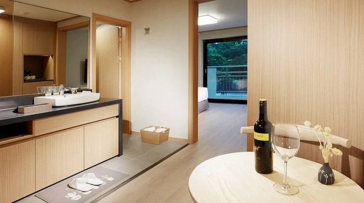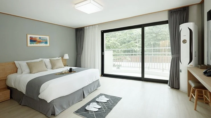 디럭스 더블은 가장 기본 객실이다. 침실 2개(퀸베드/온돌룸), 화장실, 발코니로 이루어져 있다. 넉넉한 면적으로 최대 4인까지 숙박이 가능하다. 커플이나 친구들끼리 머무르기 좋다.