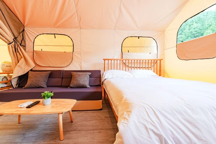핀란드 캠핑성은 넓고 쾌적한 객실 환경으로 유명한 가평 글램핑이다. 계곡, 대형, 대형 계곡뷰 총 3가지 객실타입을 보유하고 있다.