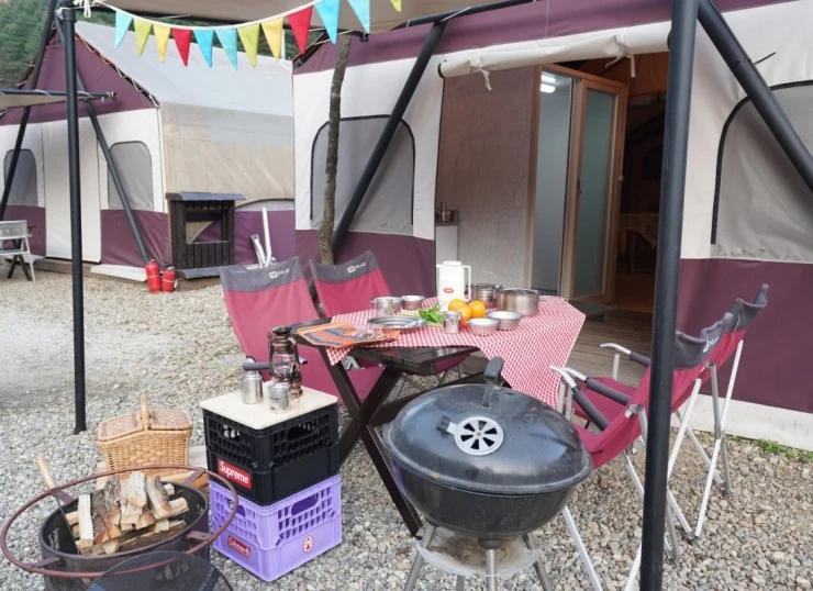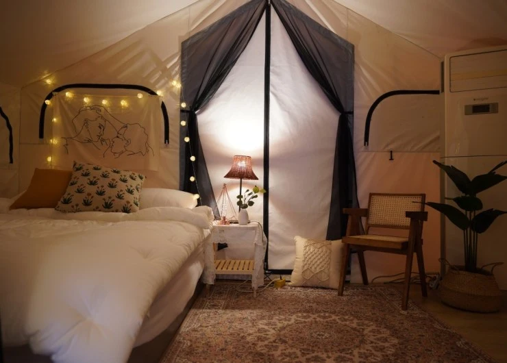 오렌지 글램핑은 감성적인 인테리어가 매력적인 가평 글램핑이다. 아기자기하기 꾸며져 있어 기념일이나 친구들과의 파티를 즐기기 좋다. 인생샷을 남기고 싶은 감성 캠핑족이라면 오렌지 글램핑을 선택하자!
