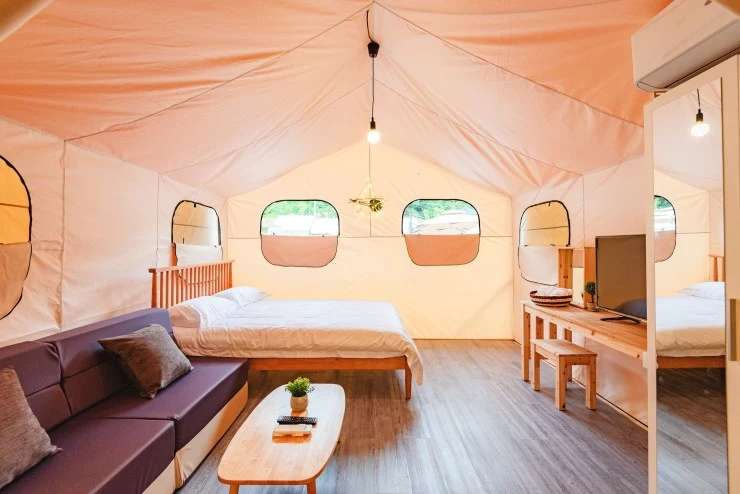 오렌지 글램핑은 감성 인테리어의 끝판왕 가평 글램핑이다. 객실 타입은 스탠다드, 디럭스, 슈페리어, 키즈 5가지 타입을 보유하고 있다. 전 객실 2~4인까지 머무를 수 있어 커플이나 친구들과의 파티에 추천한다.