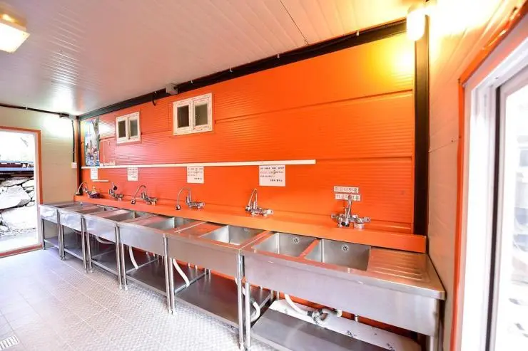 객실 내 개별 화장실 외에도 중앙 공동화장실과 샤워실, 개수대를 보유하고 있다. 많은 인원이라도 편리하게 캠핑장을 이용할 수 있다. 체크인은 15시부터 이용 가능하며 체크아웃은 11시까지이다.