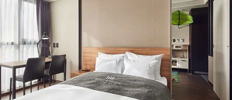 웨스턴 베이 마리나 호텔은 평택항 인근에 위치해 아름다운 평택항의 경관을 감상하기 제격인 곳이다. 전 객실 드럼세탁기와 간이 주방이 마련되어 편리하게 머물 수 있다. 디럭스 키즈룸, 패밀리룸 등 가족에 맞게 다양한 룸 선택이 가능하다.