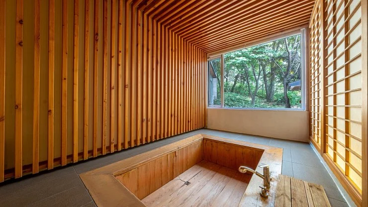 부대시설로는 전 객실 히노끼탕이 마련되어 있다. 겨울철 따뜻한 물에 몸 담그면 이만한 힐링이 없다. 향긋한 편백나무 맡으며, 창밖 숲 뷰 감상하며 여유로운 시간 보내보자.