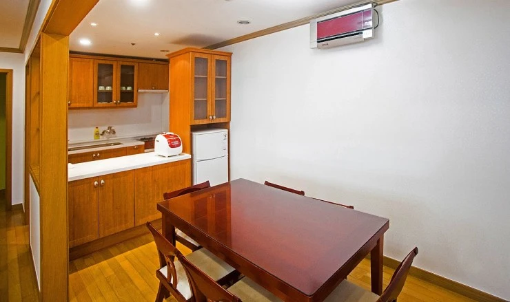 대가족이라면 훨씬 더 넓은 공간이 필요하다. 스위트는 침실 2개와 거실 겸 주방, 욕실 구조로, 3대가 함께해도 넉넉하다. 주방에는 냉장고와 가스렌지, 전기밥솥, 전기포트 등 취사 및 식기류 일체를 완비했다.
