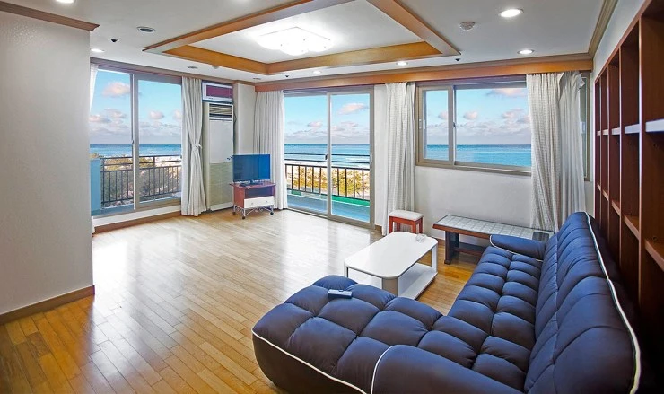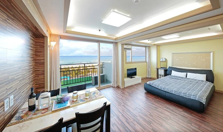 동해가 완벽하게 펼쳐진 개방형 전망을 자랑하는 객실이에요. 고풍스러운 인테리어와 넓은 거실로 부모님 모시고 여행 왔을 때 딱이에요. 주방 공간도 야무지게 갖춰놨어요. 최대 10명까지 투숙 가능합니다.