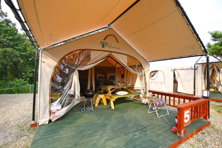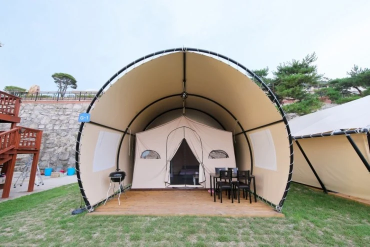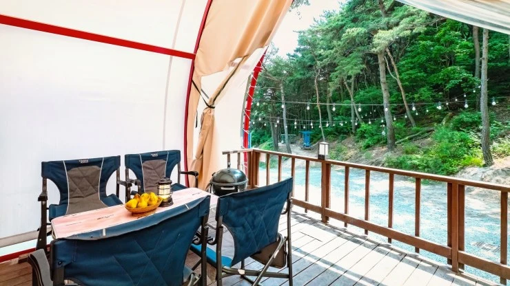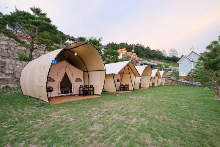 새소리와 자연의 향기가 가득한 소나무숲에서 힐링할 수 있는 경주 숙소이다. 특히 우정 여행, 가족여행에 제격인 럭셔리 글램핑은 트윈베드가 마련된 깔끔한 객실과 개별 테라스에는 바비큐 시설이 구비되어 있어 프라이빗한 겨울 글램핑 보내기에 좋다.