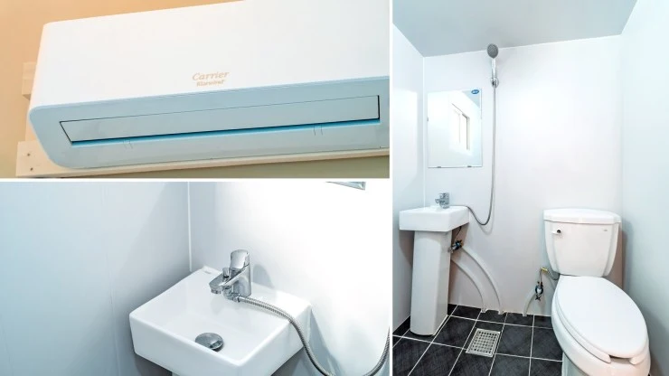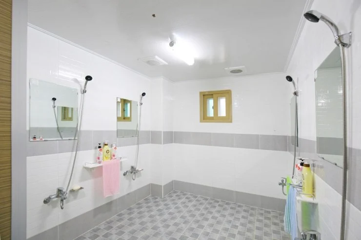 G-1호 객실에는 개별 욕실 겸 화장실이 마련되어 있어서 공용 시설을 이용할 필요 없이 쾌적한 공간에서 프라이빗하게 사용할 수 있다. 그뿐만이 아니라 수건, 헤어드라이어, 샴푸, 린스, 바디워시, 비누 등 어메니티도 제공되니 칫솔과 면도기 등 개인용품만 챙겨가자.
