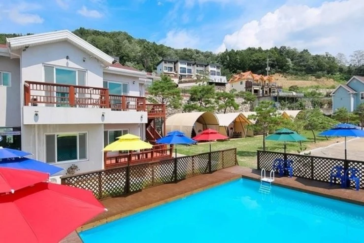 무장산 아래 아늑한 캠핑을 즐길 수 있는 별빛마루글램핑은 럭셔리 글램핑, 카라반, 그리고 펜션 등 다양한 객실 타입을 보유하고 있다. 간이 수영장, 족구장, 실내 바비큐장 등 부대시설을 보유해 즐길거리 가득한 곳으로 정평이 나 있는 경주 글램핑 펜션이다.