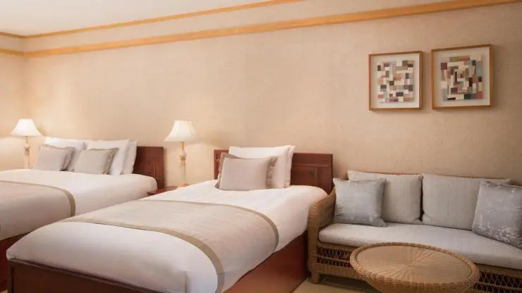 프리미어 온돌룸은 패밀리 트윈베드가 있는 객실이다. 베드와 요이불세트를 모두 이용하면 최대 5인까지 숙박이 가능하다. 취향에 따라 한실, 젠메밀, 바이오, 메모리폼, 양모 베개 등 맞춤형 베개도 선택할 수 있다.