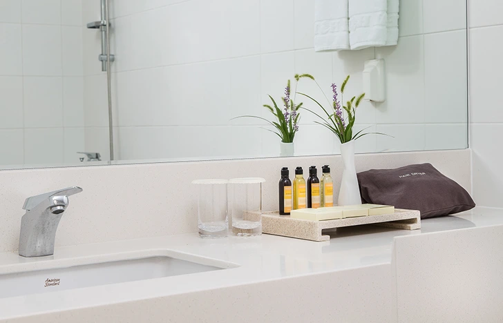 어메니티는 샴푸, 컨디셔너, 바디샴푸, 1회용 칫솔 및 치약, 면도기까지 꼼꼼히 제공된다.