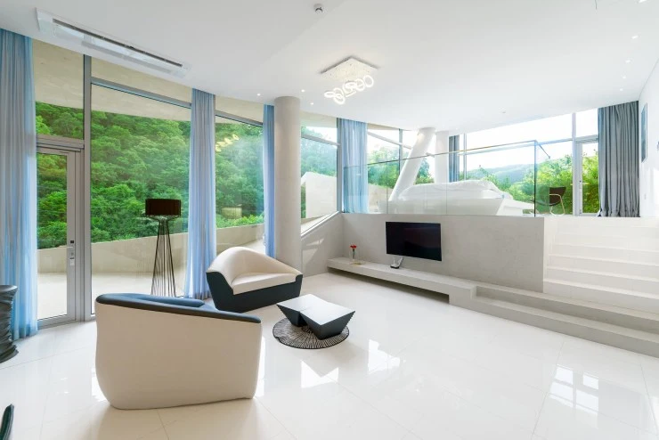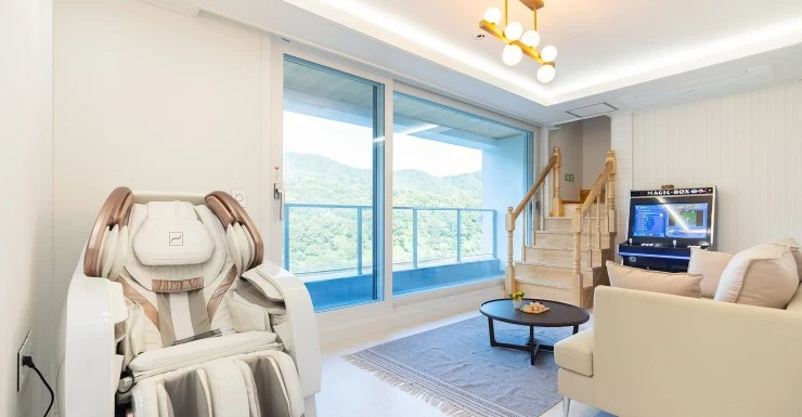 더테라스 홍천 펜션 객실은 총 4개예요. 모두 기준 인원 4인에 최대 8명까지 투숙할 수 있다. 객실 크기나 구조만 보면 비슷하다. 거실과 화장실이 각 2개에 방 3개, 주방으로 구성됐다. 풀빌라답게 개별 수영장은 빼놓을 수 없다. 객실마다 갖춘 안마의자와 게임기는 남녀노소 누구나 좋아한다.