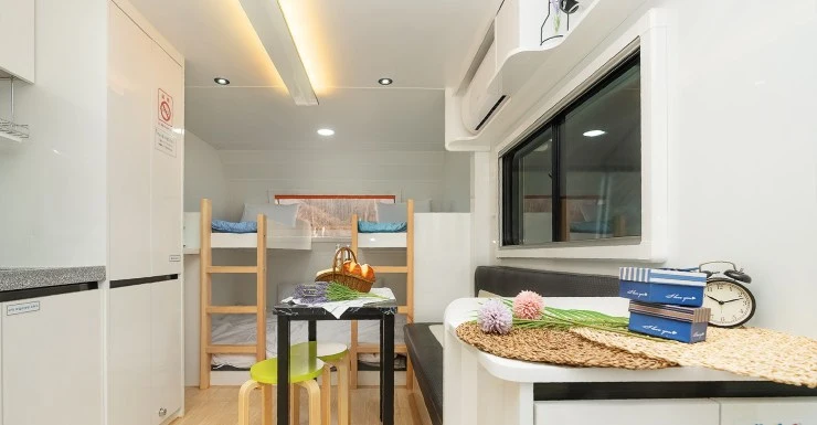 홍천 펜션 쁘띠힐링은 총 10개의 카라반 객실을 보유했다. 1~8호는 기준 인원 2인에 최대 6명까지 투숙 가능하다. 살짝 작은 9호와 10호는 5명까지 묵을 수 있다. 카라반 안에는 더블 침대와 2층 침대, 주방, 전용 욕실을 갖췄다. 야외에는 수영장부터 트램펄린, 바비큐 시설 등 즐길 거리를 다채롭게 마련해 놨다.