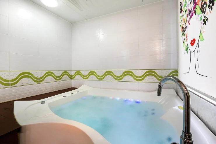 메라크는 신관에 위치한 커플 맞춤 객실이다. 침실과 거실, 욕실로 구성돼 있다. 복층 구조로 스파 시설을 보유했다. 테라스 바비큐도 가능해요. TV와 식탁, 냉장고, 전자레인지 등을 완비했다.