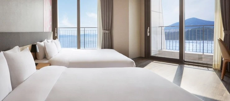 여수 벨메르 호텔은 전 객실에서 탁 트인 오션뷰를 감상할 수 있는 뷰맛집 호텔이다. 주니어 스위트 객실은 거실과 침실, 욕실로 구조의 넓고 편안한 공간을 제공한다.