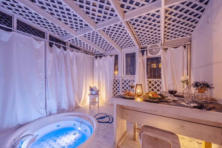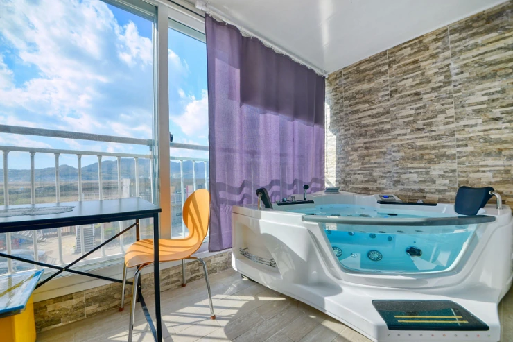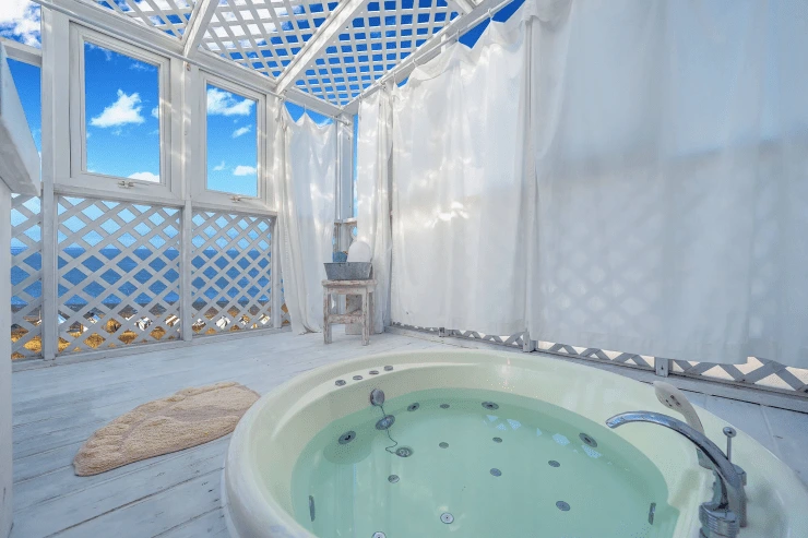 바로는 총 7개 객실을 보유 중이다. 이중 S201, S202, S203 등 3개 객실에는 스파 시설을 갖췄다. 테라스에 자리 잡고 있어, 전망이 특히 끝내준다. 커튼을 설치해놔, 사생활 보호도 완벽하다. 이외 펜션 부대시설로는 숯불 바비큐와 야외 수영장이 있다.