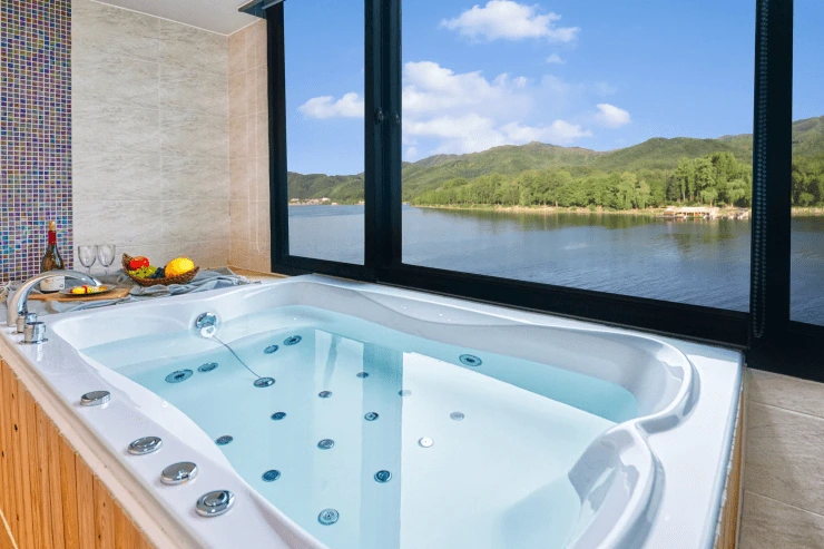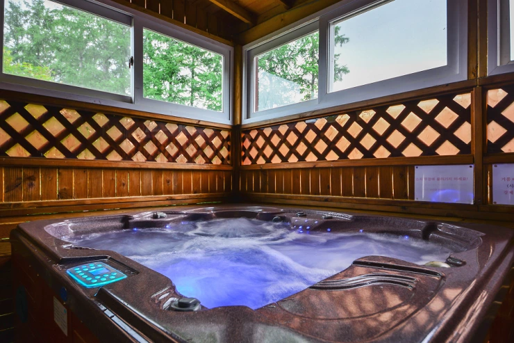 전 객실에 히노키 제트 스파를 설치해다. 시간이나 횟수 제한 없이 이용 가능하다. 편백 나무에서 나오는 피톤치드를 만끽하며 스트레스를 날려보자. 여기서도 끝내주는 리버뷰는 함께이다. 공용 바비큐장에서는 숯불 바비큐를 즐길 수 있다. 펜션 내 편의점을 운영 중으로, 장 봐올 필요도 없다.