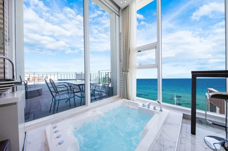그중에서도 SUN 301객실은 따뜻한 스파에 몸을 담그고 통창으로 맑은 바다를 바라볼 수 있으니 특별한 추억 만들 수 있다.