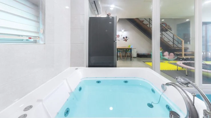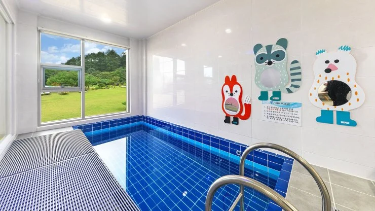 객실에 따라 미온수 수영장과 스파 시설이 마련돼 있다. 스파는 말랑말랑 푹신한 느낌의 소프트 스파와 강력한 수압의 제트 스파로 나뉜다. 키즈 펜션답게 야외는 물론, 객실 안에도 놀이터를 갖췄다. 트램펄린부터 정글짐, 각종 장난감까지 부족함 없이 구비했다. 펜션 안에는 노래방과 오락실도 있다.