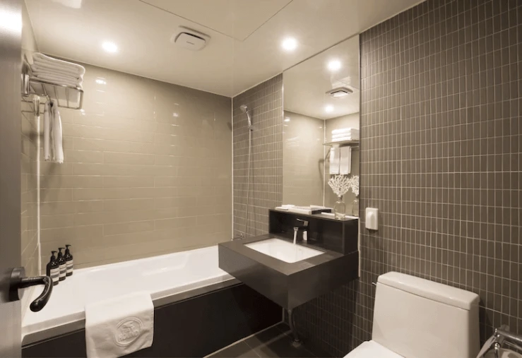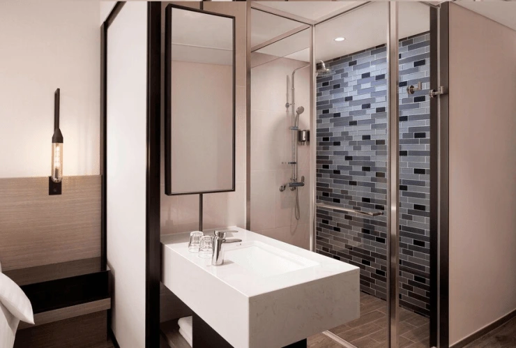 욕실 어메니티로 샴푸와 컨디셔너, 바디워시, 바디로션, 비누가 제공된다. 칫솔과 치약, 면도기, 면도젤, 화장솜, 면봉, 샤워 스펀지, 머리끈, 빗, 페이스 워시가 비치돼 있다. 헤어드라이어와 수건은 기본이다.