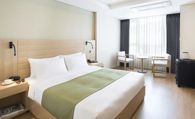 나 홀로 또는 둘이 투숙하기 딱 좋은 객실이다. 침대 타입은 킹과 트윈으로 나뉜다. 스탠다드 룸 안에는 TV와 소파, 금고, 책상, 미니 냉장고 등을 갖췄다. 6만 원대로 올스테이 할 수 있다.