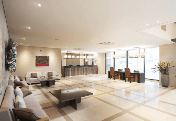 로비와 프런트 데스크는 24시간 운영돼요. 부대시설로는 비즈니스 센터와 릴렉스룸, 세탁실, 카페를 갖췄다. 세제는 프런트에서 구매 가능해요. 카페는 브런치 맛집으로 유명하다. 오픈 샌드위치를 추천한다.